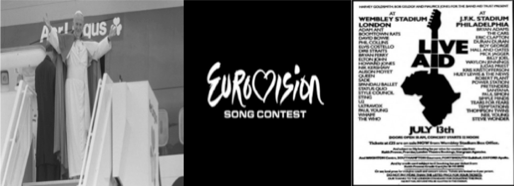Defining moments of the 70's baby are a collective mix from Pope John Paul's Visit to the Eurovision