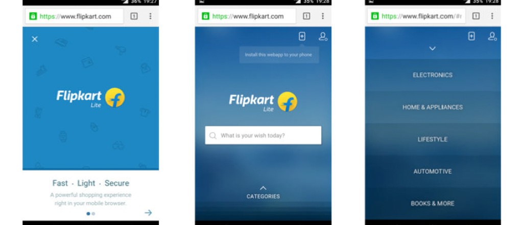 Some brands have already been embracing mobile opportunities and have designed fabulous mobile shopping experience with native apps. Others like Flipkart, an online trading platform, opt for Progressive Web Apps. Flipkart Lite, for example, allows users to access the app with one touch, even if you're offline, and sends push notifications even when users browser is closed.
