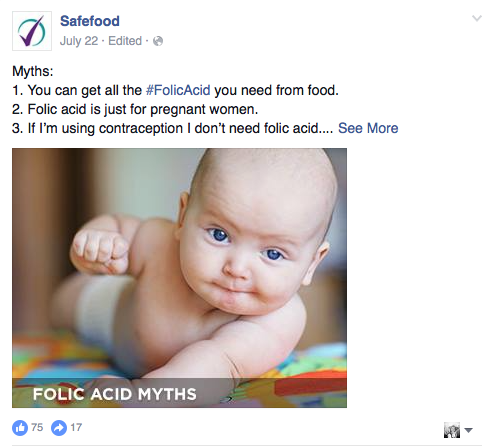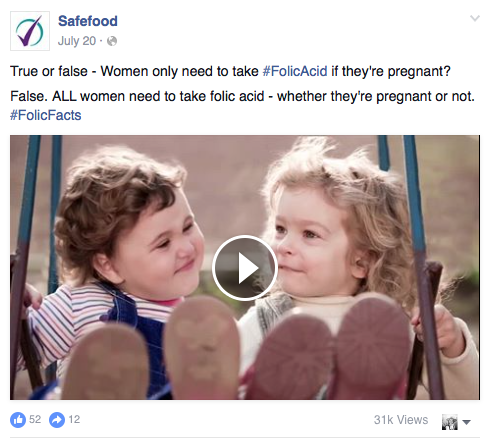 Point of sale display tying in with the idea was deployed in pharmacies and multiples across the country, while Facebook posts dispelled common folic acid myths, giving relevant, short facts about the importance of taking folic acid.